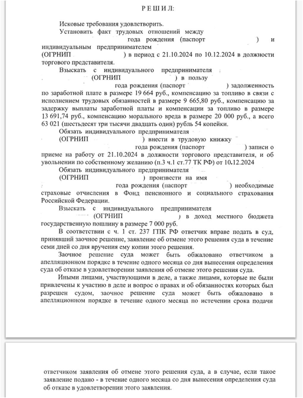 Дело о защите трудовых прав работника